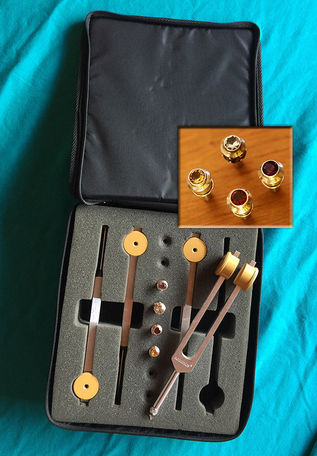 Although we work with many gems, each of which has their own unique therapeutic qualities, one example of a gem tip set is the Three Treasures. The Three Treasures, the Three Precious Ones, or The Three Elixir Fields refer to three intrinsic and inseparable forces that embody Humanity, Earth, and Heaven.